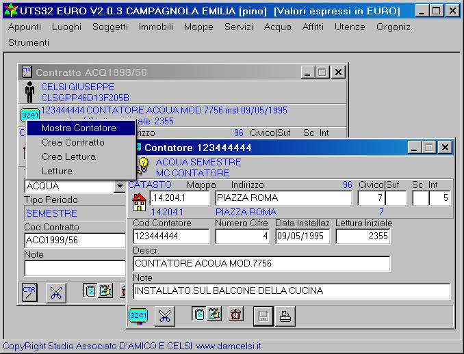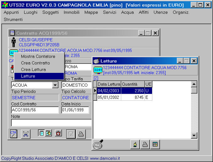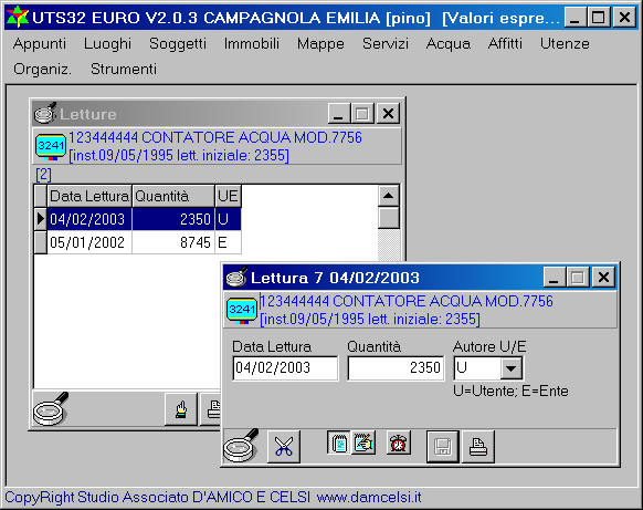 Per un contatore vengono via via registrate le varie letture (effettuate dall'Ente o dallo stesso Utente):