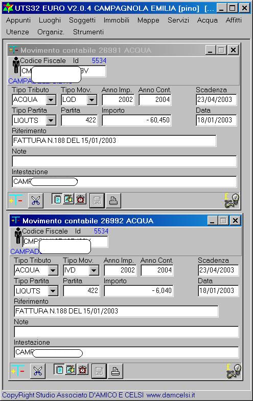 All'invio della fattura il programma genera due movimenti contabili a debito del contribuente: